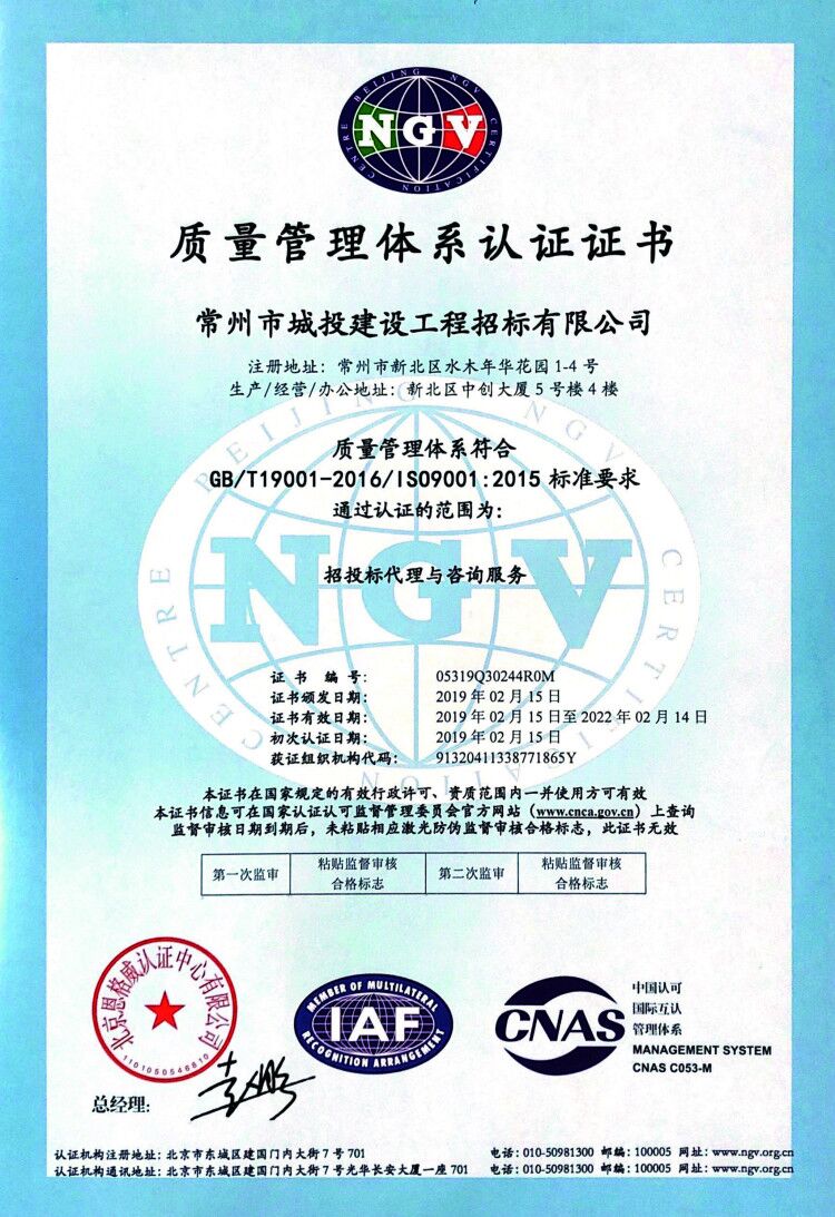 质量管理体系认证证书